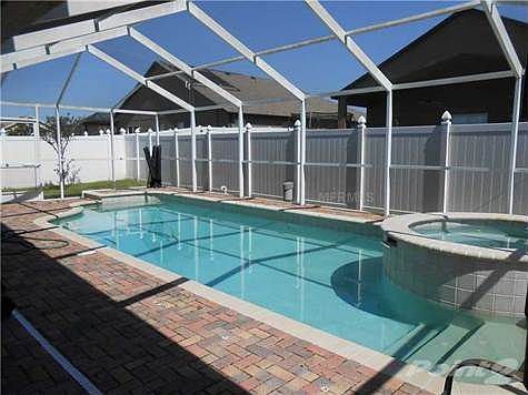 Corner Lot! 4 bedroom/ 2 bath/ 2 car garage /1 inground pool with hot tub! Beautiful 2005 home with great floor plan sits on a corner lot with lush Augustine grass, finished landscaping and colorful concrete edging. Kitchen offers beveled edge counter tops,smooth top range, built in microwave, decorative ledge, recessed lighting and upgraded kitchen cabinets. The home has laminate and tile floors through out. Master bedroom bath features chrome and gold plated faucets, garden tub and walk in shower with dual shower heads. Cafe door from master Bedroom to pool area. Alarm system through out home with panic button in Master Bedroom and Utility room for fire/police/ambulance. All windows and doors are equipped with alarms.Intercom system through out home featuring music and front door guest announcement button. Custom plantation blinds professionally installed in living room along with mirrored wall. The screened caged Inground Pool can be accessed through the family room or master bedroom and features fiber optic lighting, screen cage, a heated jacuzzi, and child fencing. Property is fenced along the back of home to allow privacy for the pool and jacuzzi and a fenced and cross fenced side yard as a possible dog run and child play area.