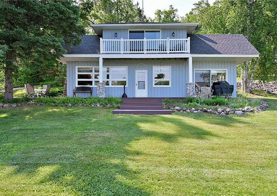 This charming 3 BR/2 Ba home on Big McGraw Lake is being sold turn-key/fully furnished and packs a punch for the price. Impeccably cared for inside & out, lakeside master suite with balcony, lower level walkout, stone woodburning fireplace in LR, gas fireplace & bar in 4-season porch, forced air & central A/C. Gorgeous lot with level elevation, immense privacy, west views for sunsets, 113' of sand frontage, and asphalt driveway from the road all the way down to the lake. Relax at the end of the day on the lakeside patio, around the firepit or in the sauna. Adorable bunkhouse for overflow guests. Maintenance free, steel sided 2 car garage and garden shed. Nicely landscaped with gardens and riprap shoreline. ATV & snowmobile right from the property as an added bonus! Pontoon avail. for purchase.