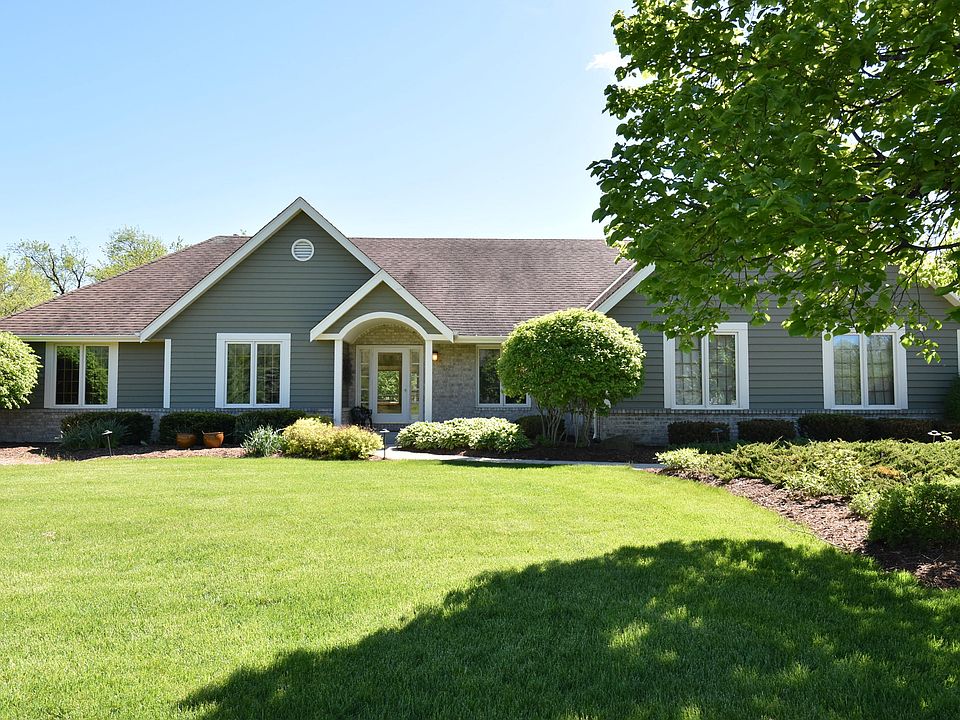 Private retreat in your own home! Walk into this beautiful, updated 5 bedroom, 3.5 bath home. Great room has Cathedral ceilings, Corner GFP, and views of private back yard. Opens to kitchen with Hardwood floors, Breakfast bar, and SS appliances. 1st floor has a den/office with built in bookcase and French doors. 3 Bedrooms on main floor - new carpet throughout main floor with newly refinished hardwood floors. Enjoy your coffee in the morning off the Master bedroom covered deck. MBR has Tray ceiling and Walk in closet. Master bath has Double sink vanity, Jetted tub, SS, & tile floor. LL is completely finished walk out with Family room with surround sound Bose system, Wet bar, 2 more bedrooms and full bath. Private back yard with in-ground pool, and large fire pit for s'mores.