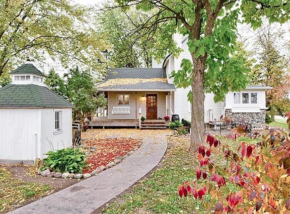Welcome Home to this turn of the century farmhouse, with many updated features, chicken coop with electric, two renovated gambrel style barns (46'x48' and 22'x40' with new concrete), greenhouse, silo, and a lovely garden shed. All this on a private and secluded parcel with mature fruit trees and plenty of perennial plants. This three bedroom and two full bath home features a tiled ensuite primary bedroom on the first floor with a private entrance with a newly remodeled full bath and the second floor features two large bedrooms, remodeled full bathroom, large closets, and a large attic space perfect for storage. Furnace and A/C are new, and all electric has been updated throughout the home. The smaller gambrel barn has a heated, insulated (2018) and concrete floor (2018) work space, in addition to a dirt floor storage area and greenhouse. The large barn was completely renovated (2020) inside and out. This 20' high building features top of the line lighting, metal and concrete (6-8" on