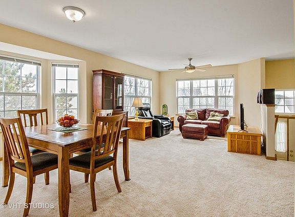 PREMIUM SUN DRENCHED END-UNIT TOWN HOME AND LARGEST IN PRAIRIE POINTE. OVERLOOKS OPEN COMMON AREA FOR ULTIMATE IN VIEWS AND PRIVACY. FRESHLY PAINTED AND NEW CARPET THROUGHOUT. 2 BEDROOMS + LOFT, 2 1/2 BATHROOMS, 2 CAR GARAGE. SPACIOUS KITCHEN WITH PREP SPACE AND PLENTY OF CABINETRY. LARGE BREAKFAST ROOM OFF KITCHEN WITH WALKOUT TO PRIVATE BALCONY THAT OVERLOOKS GREEN SPACE. SPACIOUS LIVING/DINING ROOM COMBINATION PERFECT FOR ENTERTAINING. ADDITIONAL RECREATION, PLAY ROOM, OR FAMILY ROOM IN LOWER LEVEL. GENEROUSLY SIZED VAULTED MASTER BEDROOM WITH PRIVATE MASTER BATH. SECOND FLOOR LAUNDRY. BEAUTIFUL LANDSCAPING AND USABLE GREEN SPACE PERFECT FOR THROWING BALL OR LETTING THE DOG GET SOME EXERCISE. SO MUCH FOR SO LITTLE. DO NOT MISS THIS ONE. IT WON'T LAST LONG!