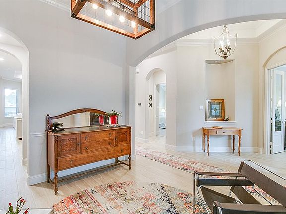 Stunning one story home in Woodtrace with brick and stone exterior features three car garage and wood veneer garage door on a cul-de-sac! Impressive bricked front porch leads to a bright entrance with high ceilings and tiled wood-like floors. Front of home has easy access to the study with french doors and formal dining room. Kitchen features a massive island with elegant granite, detailed white cabinets, brick back-splash, double ovens and a huge walk-in pantry. Home hosts a split floor plan with two guest rooms and full bath at the front of the home, a bedroom with full bath tucked in the back of the home, and a separate entrance for the Master Retreat. Master bedroom has a luxurious spa with huge walk-in closet. Large covered patio has views to the terraced backyard. No representation is made to the validity of the information provided including, but not limited to sq. footage, HOA, taxes, schools, etc. Buyer must verify all information-all measurements are approximate.