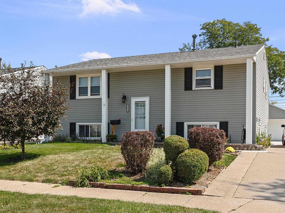 Welcome to this well-cared-for split-foyer with 4 bedrooms (1 non-conforming) and 2 full baths. The main level features a cozy fireplace, eat-in kitchen with new luxury vinyl plank flooring (July 2025), and a large pantry in the hall. Two bedrooms sit upstairs, with two more downstairs. The walk-out basement expands your living space with a spacious family/rec room, abundant built-in cabinetry, full bath with walk-in shower, laundry, and another pantry. Thoughtful storage is found throughout. Enjoy a deck overlooking the manicured yard, plus a 2-car garage with lean-to extension. Roof replaced in 2020 and mechanicals maintained regularly. Sellers will leave the gazebo; island, coffee bar, and select cabinets reserved. Just blocks from restaurants, groceries, parks, and schools, this home blends comfort, convenience, and charm while leaving room for your personal touch.