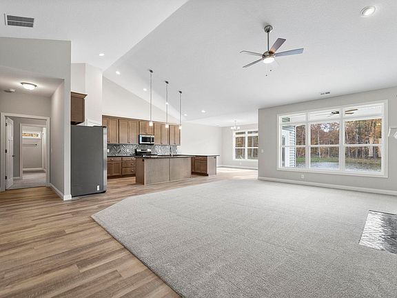 Purchase this home and receive an Interest Rate as low as 5.5%. Ask us how to get this great deal! This growing subdivision has a lot to offer and this beautiful home just adds to that value! Presented to you by KIRACOFE HOMES on a pond lot with great sunset views. 2,218 sq ft Ranch with 3 Bedrooms and 2.5 baths. Premier Craftsman Style home with accents and stunning curb appeal. As you enter the home you will find an open concept floor plan with spaciousness through the foyer to the Great Rm, Kitchen and Dining. The Cozy Gas Log Fireplace is featured in the Great Rm and can be seen through out the main living area. The kitchen has a large island, walk-in corner pantry and breakfast bar. The kitchen has custom cabinets with "Soft close" doors and drawers, Granite Countertops, Tile backsplash and Stainless Appliances are included. The Master Suite includes a Tile Walk-in Shower, Double Vanities, and extra large walk-in closet. The laundry room is next to the Built-in lockers and includes a Laundry Sink. Lawn has Sod w/irrigation in the front. Come and see all the extra features Kiracofe homes includes.