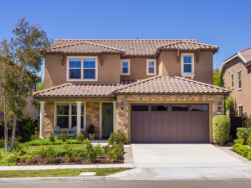 This beautiful 5 bdrm,4 bath home was recently built in 2011. The main floor features a gourmet kitchen with s/s appliances, granite, gas stove, microwave and dishwasher. The adjacent family room with fireplace and wood floors leads out to the professionally landscaped backyard with pavers and gas fire pit. There is also a full bath next to a large bedroom downstairs. The master suite double sinks, large bathtub, shower stall and walk in closet. Another bedroom upstairs has its own full bath. This energy efficient home is located in a community with pool, gym and clubhouse and is located it the ENCINITAS SCHOOL DISTRICT.