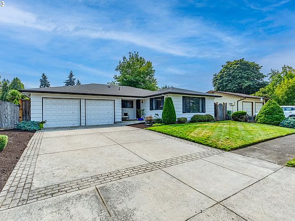 Improved price! Also offering a $5,000 credit towards buyer's closing costs and/or a rate buy down. Don't miss this charming 1970's custom one-level home located within the coveted Ferry Street Bridge area and Sheldon High School district. Step inside and be transported into a world of iconic architecture and nostalgia. This retro gem, in mint condition, offers a spacious living & dining area, a family room with a cozy fireplace, three bedrooms, and two bathrooms. The primary bedroom has an attached bath for added convenience. The kitchen features a combination of original wood cabinets & countertops along with new appliances, sink and faucet, which provides a touch of modern convenience while maintaining the vintage vibe. Step outside onto a covered deck to enjoy privacy and the lush foliage. Both the front and back yards have underground irrigation systems, RV parking on the side and an extra deep garage for shop area or extra parking. While the house has been lovingly maintained in its original condition, some updates have been made such as new white oak hardwood flooring throughout. In addition, new sinks, faucets and toilets have been installed in the bathrooms along with new paint and newer roof. Enjoy the convenience of walking to schools, parks, and shopping. Don't miss the chance to own a piece of history. This well-preserved home still abounding in character offers a unique opportunity for those who appreciate the allure of the past. This is a must see!
