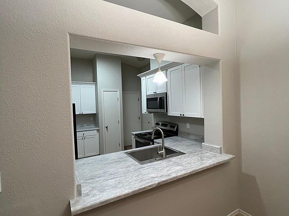 **2023 REMODEL**This home features two full baths and split bedroom floor plan with an open & spacious living area with Vaulted Ceilings. Third room with a bay window does not have a closet and is small. It is perfect as a home office or gym. The home is fully remodeled with luxury vinyl flooring throughout, new kitchen and updated baths. The spacious Master features an en-suite bathroom with dual sinks, soaking tub and walk-in closet. Beautiful, Custom, Back Patio with overhead light & fan. Mountain Views from Back Patio. Producing Texas Sweet orange tree in front. All new paint throughout. Energy-star rated furnace and A/C unit. Finished, two-car garage with more parking on the apron and street out front. Close to Davis-Monthan Air Force Base, Border Patrol, I-10 and Airport. 15 Minutes to Downtown via Aviation. Bike or Walk to groceries. Small, hidden neighborhood. Check the Statistics! Or, simply turn on the alarm because its wired for security with unit convenient to front door and garage access. Xeriscaping makes water bills low and maintenance simple. Some animals permitted with pet rent and additional pet deposit. Must apply online. Showing subject to application review and approval. Currently occupied. No showings until home is ready to rent. Owner pays HOA. Tenant pays utilities (water/sewer/trash, gas & electric).