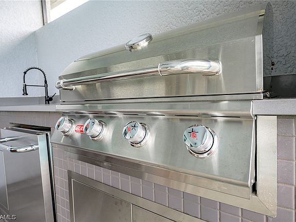 - Exterior features: Security/High Impact Doors, Sprinkler/Irrigation, Outdoor Grill, Outdoor Kitchen