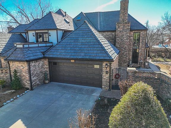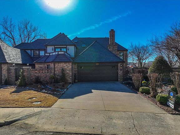 Styled after the Cotswolds in England this townhome has a very special, large back yard inside brick wall and iron gates. TOtally private & peaceful mature trees and plenty of shade in a pie shaped lot. Davinci Roof 2022. New 2024 Gas furnace. Two HVACs, one zone up and one down. Tax SF is 1794, MLS 1,936 due to enclosed upstairs sunroom. Very convenient to shopping, restaurants, postal & I-35 this classic traditional has soaring living room fireplace to a vaulted ceiling. This floorplan has a bedroom and bath down, plus a larger bedroom and bath up. In addition there are two separate sizeable landings for an office and a sitting or recreation area, plus the sunroom off the bedroom for an extra retreat. Laminate floor, tile and carpet all in great condition. Several attractive updates & Granite in kitchen. Remodeled lighting & tile shower with separate jetted tub in primary. Window treatments stay as well as refrigerator. Special bump out window in the Dining Room. Breakfast area and storage off the kitchen. Beautiful oak woodwork and trim. This home backs up to the City of Norman greenbelt for added privacy. Downstairs utility room off the garage, plenty of understairwell storage and gorgeous mirrored wetbar behind folding doors. Newer ceiling fans in every room. This one is a beauty!!