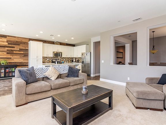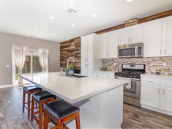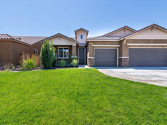 Located in Rosamond is a picturesque home featuring 3 bedrooms, 2 bathrooms and an attached 3-car garage. Inside offers elegant details that include laminate, plush carpet and tile flooring decorated with thick baseboard moldings. This home also has recessed lighting, double pane windows and even a laundry room! There is a nice sized living room, a formal dining room and a family room. Open to the family room is a chefs kitchen with sleek countertops, a decorative tile backsplash, stainless steel appliances and a unique wooden paneled wall backdrop adding a nice eye-catching design to the space. Bedrooms in the home are all well-illuminated, spacious and offer ample closet space. The larger of the rooms is a Master bedroom with a walk-in closet and a private bathroom equipped with a soaking tub, walking shower and dual vanities. Entertain or unwind in the back yard where you have a lush green lawn, open patio and all the privacy you could ask for!