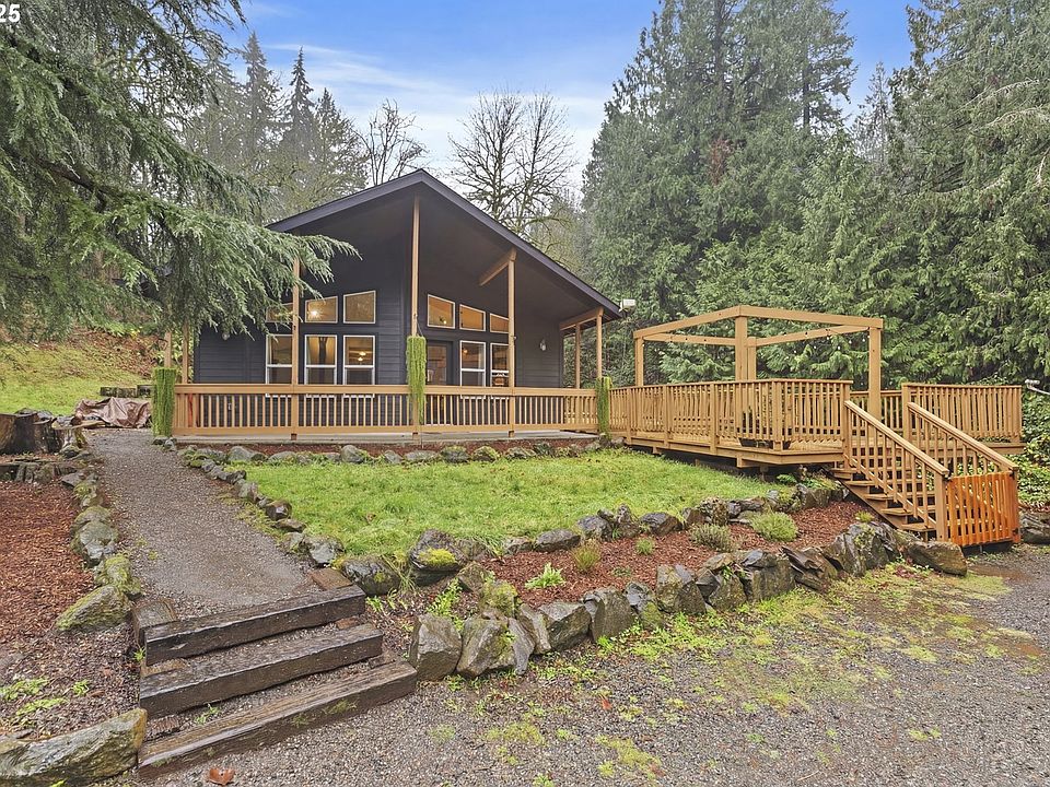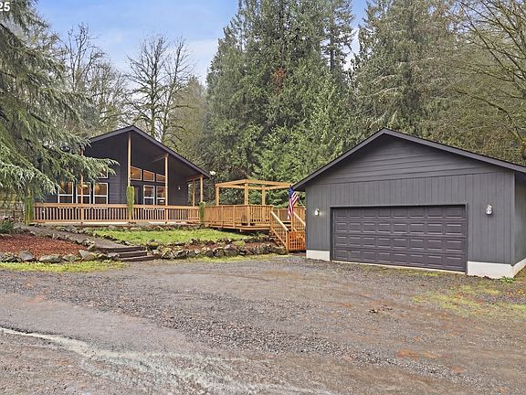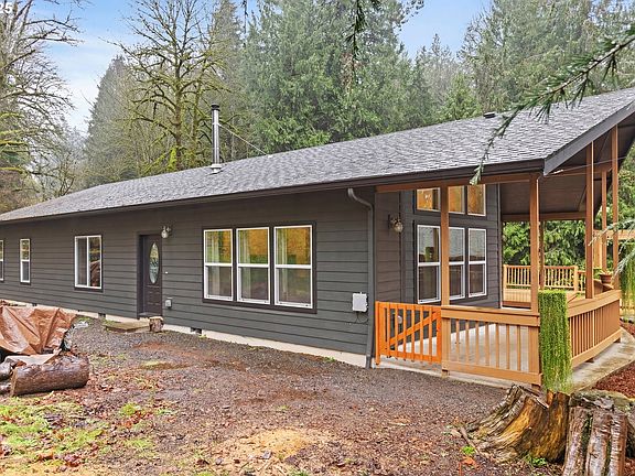 Discover the perfect blend of privacy, comfort, and Northwest beauty nestled on 3.9 acres of serene, wooded land, this inviting 3-bedroom, 2-bath, 1,716 sq. ft. home offers the ideal retreat while still keeping you close to local amenities. Step inside to a warm and welcoming interior featuring an open, functional layout with generous natural light and tranquil views from every window. The spacious living areas provide effortless flow for both everyday living and entertaining. A well-appointed kitchen, comfortable bedrooms, and thoughtfully designed bathrooms create a home that feels both practical and peaceful. Outside, the property truly shines. Towering trees, natural landscaping, and ample space to explore make this a haven for nature lovers where Tickle Creek runs through your property. With nearly 4 acres, there’s room to garden, build, play, or simply enjoy the quiet of your own private woodland escape. Whether you’re seeking room to spread out, a connection to nature, or a place to create your long-term vision, this property offers extraordinary potential. Come experience the beauty and serenity of this home. ALL NEW as of 2024, exterior paint, roof, hot water heater, carpet and interior paint in hallway, bedrooms, and bathrooms, newly remodeled primary closet(in room), closet doors, doors to rooms, canned lights in primary and second room, new fans throughout. New fridge excluded from sale but will be replaced with one in garage.