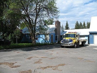 Prime Highway 2 frontage, excellent location for a business! Situated on 0.96 Acres this property has much to offer. There is a 4,512 sq.ft. insulated and fully wired shop. The shop is divided into a large display room/reception area, an office, several large working areas, and a paint area. There are two garage doors leading into the shop as well as a man door leading into the display/reception area. The property also has a 1,842 square foot 2 car garage with a 1 bedroom/1bath with attached 2 car garage included with the property. The home has had updated kitchen cabinetry installed recently. There is also an office area located on the second floor/attic area of the home. The property is fully fenced with chain link fencing and has a locking front gate for maximum security