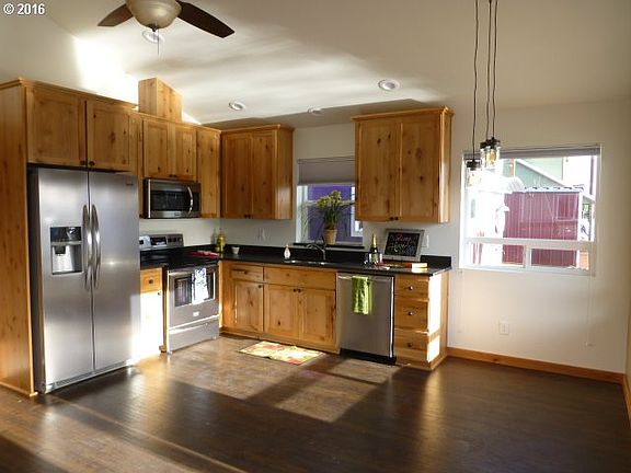 Super home or getaway, cute as a button. Brand New, built with quality throughout. High end finishes; Granite counters, Alder Cabinets, all new stainless appliances. High quality pergo-type flooring, tile in bath. Washer and Dryer included. Large attic storage with pull-down ladder. Large covered deck to enjoy the river life. Low moorage fee!