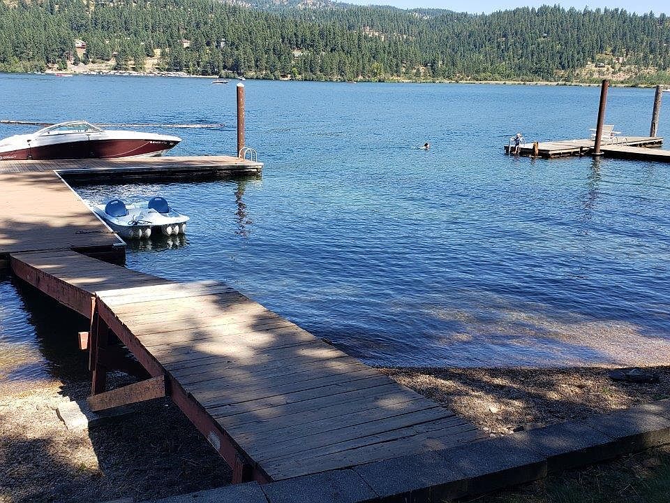 Fabulous Carlin Bay cabin on Lake CDA featuring 2 beds, 1 bath, central A/C, wood fireplace, woodstove, and fabulous views over a half acres with 110 feet of beachfront. Well maintained dock, ample parking and foundation in for oversized garage. A Must see in this iconic bay with incredible views across bay and up the lake.