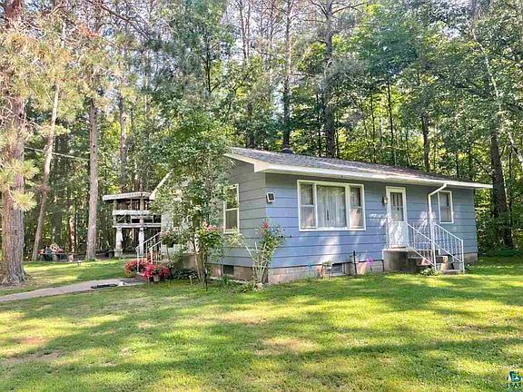 Sand lake in it's finest! Privacy and sand beach! Hard to find lake frontage like this. Park like setting on 2.36ac of land. You'll have 2 Bdrm 1 full Bath (+1/4 Ba in the bsmt) rambler with full unfinished basement w/potential to finish for some extra living space. House has forced air newer furnace, city sewer, private drilled well. With a short walk through a beautiful red pine forest trail you'll get to your 65ft of private lakeshore with a hard sand beach and a nice sitting area. Dock is included as well. You'll have a 3 car 24x30 detached garage, shed/chicken coop and absolutely adorable 2 story TIKI Bar. Perfect place to entertain your company! House roof new in 2015. Look at the timber value on the property as well! Property is located on blacktop road and just a few min from Moose Lake Golf course & Munger trail & less then 2 hr from Twin Cities. Call for your private showing!