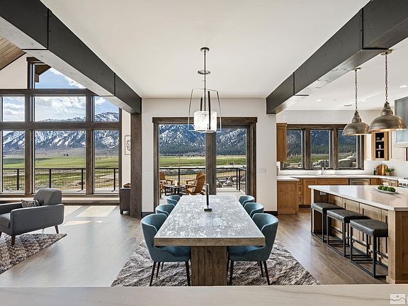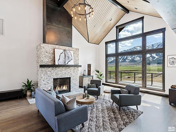 Another stunning luxury home being offered for sale at Freedom Ranch. One of just 16 priceless homesites for sale in Tax Friendly Nevada, Freedom Ranch offers it residences the privacy of a boutique gated community with expansive mountain views and incredible access to all that Northern Nevada living is about. Located just minutes to the areas super stores, 3 golf courses, hiking and mountain biking trails and Lake Tahoe, Freedom Ranch sets the bar when it comes to luxury living., Homesite #5 at Freedom Ranch has a beautiful mountain modern design with hints of tradition in its exterior. Entry brings you into a stunning great room with solid hardwood flooring, massive vaulted ceiling and windows providing you with outstanding views of the Sierra Nevada Mountains and the Jacks Valley Ranch. With luxury details and finishes throughout, the great room is highlighted by a breathtaking vaulted ceiling lined with hardwood and trimmed in metal. The great room features a top of the line built in surround sound speaker system, pre-wiring for electric blinds and access to the massive fortress deck space and paver patio also with built in speaker systems. The ample sized kitchen features commercial grade kitchenaid dual fuel range and cooktop along with a 48" refrigerator, dishwasher and built in microwave. The cabinets are solid adler to align with the stunning look of the quartzite countertops and Kohler undermount sink. The main level master is nothing short of luxury with stunning views, custom bathroom with large stand alone shower system, bathtub, heated floors and power mirrors. Located upstairs are additional ensuite bedrooms and a family room with full bar with Brazilian Tiger Wood, built in refrigerator and another stunning hardwood ceiling. No detail was missed in this awesome Freedom Ranch home. An oversized three car garage with electric vehicle plug ins. Ornamental trees, shrubs and grasses combine beauty with back drop Granite rock boulder walls and a elegant water feature. Developer has plans for additional garages, barns, workshops that can be customized and included into a sale as well as customized landscaping and outdoor living options. Freedom Ranch sits below the Clear Creek Tahoe community that features the #1 rated golf course in Nevada and where homes are selling above $1800/ft.