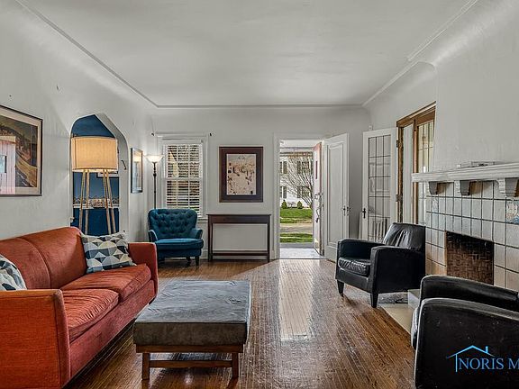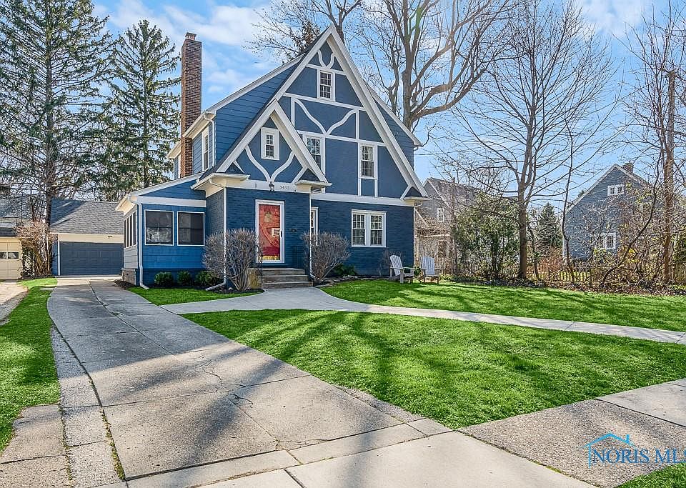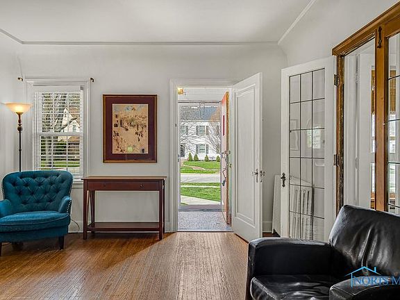 Beautiful Brick Tudor! Fresh exterior paint and new roof! Vestibule entry with original tile flows into formal living room w/hardwood floors, fireplace, coved ceilings and double French doors to sunroom. Step down into the main level paneled office w/added privacy. Formal dining room leads to kitchen and eat in area. 4 Bedrooms upstairs w/updated tiled bath. Finished lower level w/new carpet, sauna and plenty of storage. Superb location, short distance to Ottawa Hills Schools, Westgate, and shopping. Charming home, get inside!