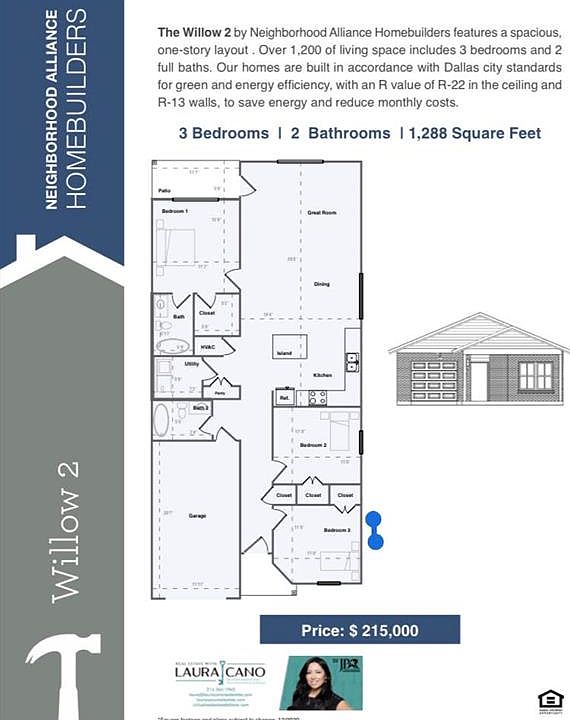You asked for it and now we have it! The Willow 2 is now available in the heart of West Dallas and minutes from Downtown Dallas and Trinity Groves! This home features a spacious, one-story layout and is packed with energy efficient features to save energy and reduce monthly costs at a great price for a first time home buyer!