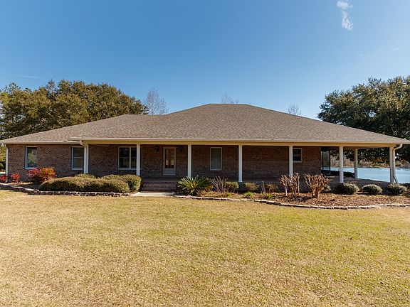 Beautiful 3 bedroom 2.5 bath brick home located on 8.68 acres WITH A POND! Nearly 2000 Sq foot brick home with a 1900 sq foot wrap around porch with 8 inch cermaic title! Beatiful Pella doors! Seamless gutter system around entire home! Solid Pine doors! NEW ROOF & NEW HVAC replaced in 2016 along with pump for the well! New flooring all in 2016! Has a 14 by 32 storage shed and 2400 sq foot pole barn! Huge dock on the pond and small pecan orchard! Home was recently painted throughout! Call today, this lovely home WON'T LAST LONG!