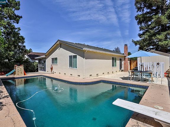 Wonderful single family home with custom features throughout. New gas fireplace insert in 2021. Updated Kitchen with Cherry Cabinetry, huge island and Stainless Steel Appliances. Hardwood flooring throughout. Spacious bright sunroom. Plantation Shutters. Finished shed w/ electrical great for home office. Large sparkling pool. Owned Solar Electric will save you thousands. Updated Electrical Panel and outlets. Bathrooms updated with tile floors and large tile shower enclosure. Mature Landscaping incl. Redwood Trees, Japanese Maple. Top Rated San Ramon Valley Schools. Easy access to shopping, transportation and great commute location.