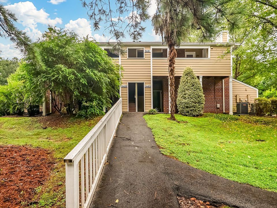 Application Pending Available Now! Showings scheduled by email only! Conveniently located off Duraleigh and Edward Mills Rd, this recently renovated 2 bedroom, 2 bath condo is tucked away within the highly desired community of Mill Ridge. This contemporary designed home is situated within a very unique community and surrounded by mature hardwoods, giving the feeling that you are far from the city. This specious and bright condo features two full bathrooms and sizeable bedrooms with ample closet space. The open concept living area is flooded with natural light and offers a wood burning fireplace, new stainless steel appliances, and a private wrap-around patio that looks down on a greenspace with a gazebo and picnic tables. Elegance meets convenience when you are able to walk out the door of this beautiful home and you are only minutes away from all the local attractions of shopping, dinning, the North Carolina Art Museum, Crabtree Valley Mall, RTP, RDU Airport, and Laurel Hills Park. No undergrads Pets are allowed with approval and deposit. (cat and small/med sized dogs only) Minimum credit score of 650+ and income must exceed 3x the rent to qualify. Showings must be scheduled by email.