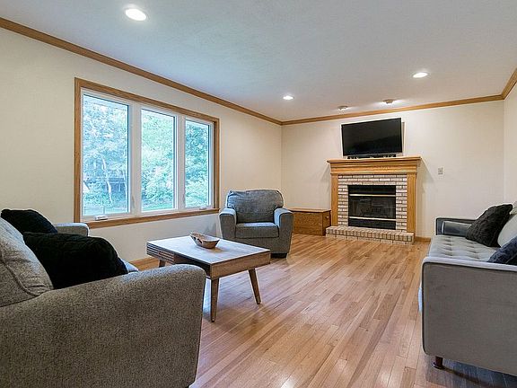 Warm and welcoming home located in a wooded, serene and highly desirable neighborhood. Close to schools, parks, golf courses, river, shopping, restaurants, bike trails, and interstate. The main level includes a hardwood floor, eat-in kitchen plus dining room, and a fireplace in the family room. Kitchen's updated stainless steel appliances are all included. The primary bedroom is located on the upper level and features newly carpeted floor, bathroom with updated vinyl floor and recently upgraded floor-to-ceiling walk-in shower. The upper level includes 3 bedrooms and 2 full baths. The finished lower level features a workout area, rec room and laundry room (high quality washer and dryer included). Outside you'll find a professionally landscaped yard with mature trees. Off the eat-in kitchen there is a beautiful and spacious screened porch, with redwood walls and vaulted ceiling, overlooking a fenced backyard -- great for hosting friends, or enjoying a coffee while watching the abundance of wildlife. House is well maintained -- other updates include furnace, water heater, AC, vinyl siding and windows, roof and gutters (with gutter guard), garage floor coating, hardwood floor, knockdown ceiling and many more. Don't miss out on this move-in ready home in a beautiful neighborhood! Property Improvements: - Carpeting 2nd Floor - 2025 - Hardwood Flooring, Family Room - 2024 - Garage Polyurea Decorative Floor - 2024 - Walk-In Shower Upgrade, Primary Bathroom - 2023 - Full Bathroom Floor and Vanity - 2021 - New Furnace, A/C and Water Heater - 2016 - Vinyl Windows, Vinyl Siding, Gutters and Roof - 2010 - Knock Down Ceiling First Floor - 2023 - Fence - 2022 - Basement Permanent Wall and Barn Door to Laundry - 2020
