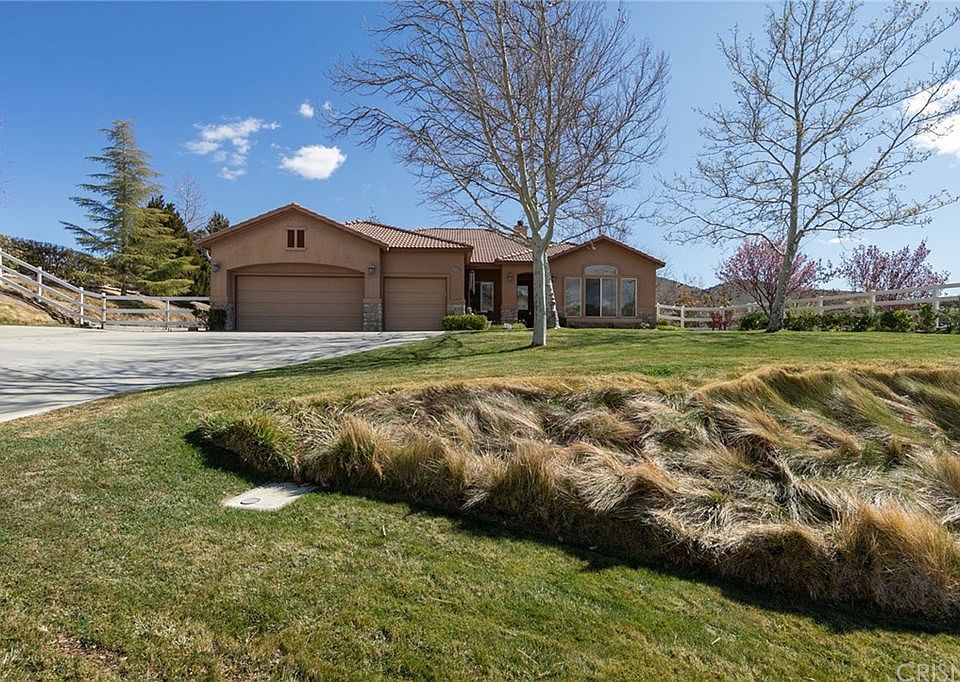 Move In Ready Paved Street, County Water Gated RV Gorgeous Single Story Forever Views Ranch Style Entertainers Equestrian Estate On 1.8 Acres -Dual Pane Windows, Extensive Custom Tiled Flooring, Recessed Lighting-Double Door Formal Tiled Entry-Large Living Room w/Large Windows for Natural Light & Plantation Shutters-Formal Tiled Dining Room is Perfect For Large Family Dinners-Huge Tiled Family Room w/ Built Media Room has Built in Cabinets, Cozy Raised Fireplace, Recessed Lighting, Sound System, Large Windows & Plantation Shutters & Slider to Patio-Guest Bathroom-Tiled Chefs Gourmet Kitchen Opens to Family Room w/Upgraded Dishwasher, Built in Stove-top, Separate Oven, Large Island w/Double Sink & Breakfast Bar Plus Additional Breakfast Eating Area-Master Bedroom w/Tons of Closet Space & Storage Space, Ceiling Fan, Large Windows, Plantation Shutters & Slider to Patio-Master Bathroom w/ Separate Shower & Soaking Tub, Double Sink Vanities, Lots of Storage-Additional Bedrooms Have Mirrored Closet Doors, Ceiling Fans, Plantation Shutters-Additional Bathroom Separate Tub Area & Large Vanity-Inside Laundry Room w/Room for Side by Side Washer & Dryer, Floor to Ceiling Custom Cabinets-Large Direct Access to House Three Car Garage w/Storage Cabinets & Sink-Huge Wrap Around Concrete Patio For Family Entertaining & Barbecues-Huge Private Lot w/Storage of Tack Room and Lots of Room for Horses-HUGE Gated RV Parking w/ Hookups and Dump Station-Minutes to 14 Freeway-Minutes to Valencia-