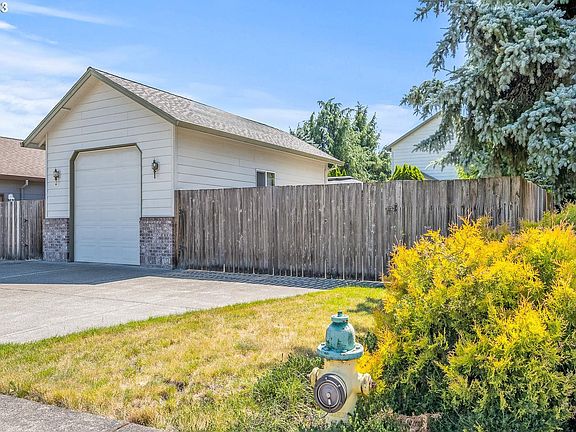 Well maintained 3 bedroom and 2.1 bath home featuring a vaulted formal living and dining room, vaulted primary suite with walk in closet, family room, stainless steel appliances, gas fireplace, air conditioning, laundry room with built ins, and much more. The large .23 acre corner lot offers an extra detached heated garage/ workshop with 10' door, large patio, fenced in RV parking pad with hook ups, water feature, and more. Relax in a shady spot under the gazebo and enjoy the tranquil sounds of the pond in your private backyard oasis. Newer furnace and water heater. New roof going on in the next couple weeks. Great location with quick access to Miller Park and the Crown Zellerbach Trail. No HOA.