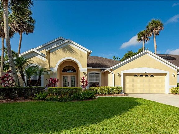 If you're looking for the Florida lifestyle this is it! Enjoy ultimate privacy in this 4BR/2BA + pool home on a premium lot that backs up to wetland refuge. Impeccable split floor plan is perfect for entertaining! Kitchen opens to family room & dinette area. Large master bedroom has dual sinks, separate tub & shower, 2 walk-in closets and direct access to the lanai. Total of 4 walk-in closets in the home. Wired for surround sound throughout, including lanai. Bedrooms #2 & 3 have an additional 2 feet per room. Low chlorine pool system. Oversized 2 car garage with pull down stairs to over head lighted storage. Ring security system included-doorbell, camera, flood light camera, and chime pro. Quarry tile entry. Exterior painted-2013. HVAC-2012. Charter school nearby. Original owner. CATS ON PREMISES.