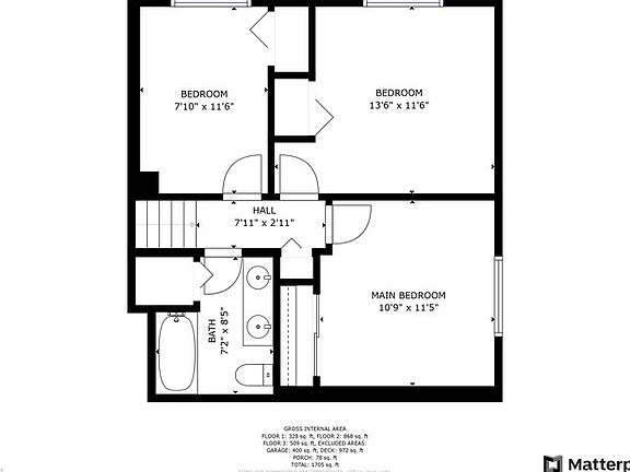 - Total interior livable area: 1,705 sqft