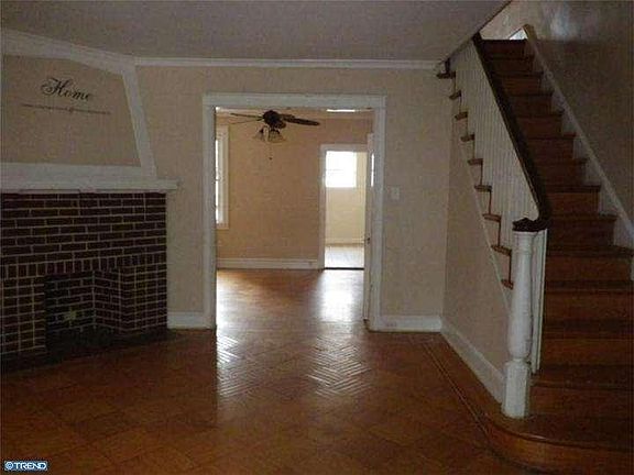 2 story brick front row, enclosed front porch. Living room with fireplace, formal dining room and eat in kitchen. 4 bedrooms, ceramic tile bath. Hardwood floors t/o, full unfinished basement. Rear driveway and garage for added parking.