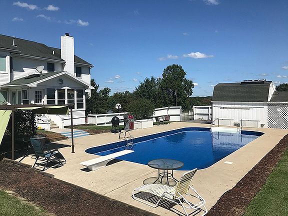 START YOUR STORY HERE in this colonial 2-story home offering 5 BR's 3.5 Bathrooms & a 2-Car Garage. When you walk thru the front door you'll feel right at home starting with the welcoming foyer. The hub of the home is centrally located where the cook in the family will whip up dinner in the very nice Kitchen w/lots of gorgeous cabinetry, granite countertops, Island with cooktop in it & a pantry. Nice big dining room to celebrate the holidays in. The main floor Family Room has a fireplace to keep you cozy this winter, along with a Bedroom & 1 full Bathroom w/walk-in shower. Upstairs there are 4 BR's, 2 Bathrooms, Laundry Area and the Primary BR has double bowl sinks, large soaking tub, walk-in shower & 2 walk-in closets! The walkout basement has a large Family Room plus a half bath. Enjoy a cup of sweet tea in the 4-season room that overlooks the large backyard with the 20'x40' in-ground pool, where you can cool down this summer splashing around. Lots of space to entertain & extra-large lot for the kiddos and family pets to play in. Imagine in the wintertime, the backyard makes a great place for sledding. Large storage building with lots of room. Make the right decision for your family & call today to see right away, there's not a thing to do but pack your bags, make the move & call this "HOME.