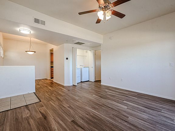 Located at the Raven in South Phoenix, this move-in-ready home features new flooring, fresh interior paint, a 2025 A/C unit, and a newer washer and dryer. Enjoy added privacy and natural light in a peaceful unit overlooking the Raven Golf Course and nearby canal. The gated community offers easy freeway access and is just minutes from Downtown Phoenix, Sky Harbor Airport, and South Mountain trails for hiking, biking, and scenic views. A well-located home offering modern updates, scenic surroundings and convenient city access. No pets preferred but will consider 1 small dog. $75/mo pet rent.