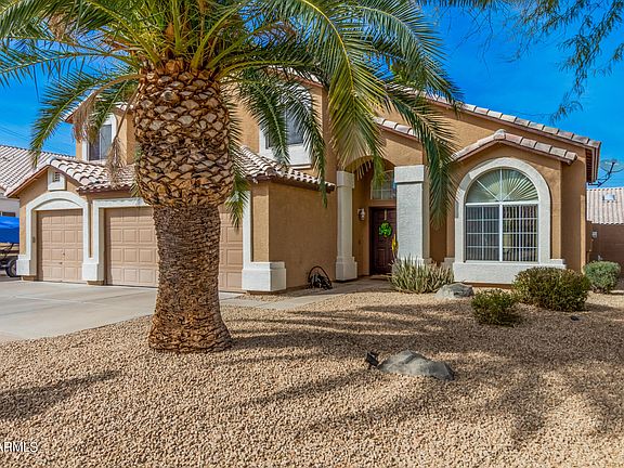Your family home awaits you. This house is placed in a cul-de-sac, 3 miles from all neighbor schools, and 300 feet from the jogging and biking paths. As you enter the home, there is a living/dining room with ceiling fans that overlook the front xeriscape yard. The kitchen has been partially remodeled with pull out drawers, and opens to the family room with a cozy fireplace. The staircase is an eye catcher and leads up to the 4 expansive bedrooms. Two of the rooms have tasteful shelving, good sized closets and block out windows and screens and curtains. Bathroom between the rooms have double vanity sinks. The 5th bedroom is adjacent to the third bathroom and has plenty of closet space. The washer and dryer in a room with closets for storing extra serving items. Enjoy a large lot out back with a great size heated pool and spa. There is a 2 ½ car garage with Left sided cabinets for storage. There is an RV gate and 2 storage sheds behind it. Concrete is poured and you could pull any toys or even an RV out back. AC units are 18 months old, canned lighting in the kitchen and all bathrooms have been painted 1 year ago.