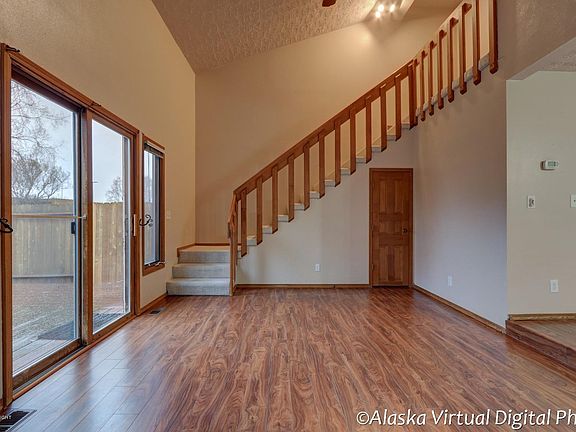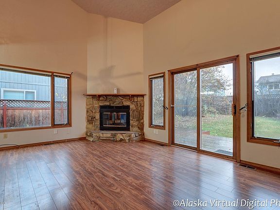 This Columbia Park 3 BD, 1.5 BA ZLL has a lot to offer and the location is IDEAL: adjacent to Balto Seppala Park, minutes to trails, Lake Hood, Rustic Goat, churches, schools and the airport is only 8 minutes away. Open dining area to LR w/stone-faced fireplace and vaulted ceiling. Large windows throughout add an abundance of natural lighting. Sliding glass doors off LR to private fenced yard with ample decking- perfect for those outdoor BBQ's and entertaining. Walk-in closet in master bedroom, laundry area with built-in cupboards for extra storage and a 2 car heated garage. NO DUES make this move-in ready home a winner!