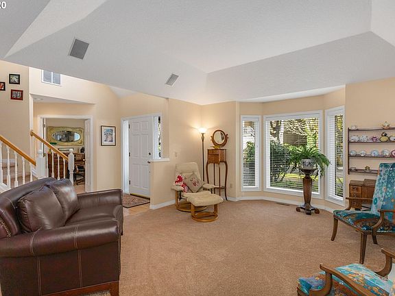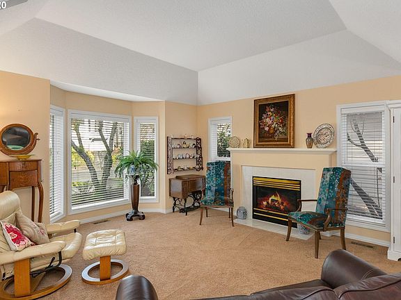 Darling home nestled on a ridge, overlooking leafy trees creates easy no maintenance outdoor enjoyment on the back deck & covered patio. Gorgeous granite countertops in the kitchen open to the cozy family room, complete with a gas fireplace. The living room features a bay window and a second fireplace, open to the dining area. Soaring entryway with skylight takes you up to the two en-suite bedrooms. The quiet office on the main can be used as a guest bedroom and has its own full bath adjacent.