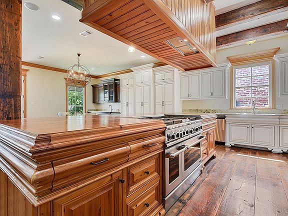 Welcome home! When you walk in the door you will immediately notice the gorgeous wooden & ironwork doors throughout the foyer and the custom brick focal point in the dining room. The kitchen is open to the keeping room and living room featuring a massive island, gourmet appliances, granite countertops and ample cabinet storage space. The master bedroom features soaring ceilings, an ensuite bathroom with his/hers vanities, custom shower and even a space for a beverage refrigerator to enjoy a cocktail while soaking in the garden tub before entering the jaw dropping master closet. Downstairs you'll find a bonus space that can be used as a gym, office or nursery as it's connected to the master suite via the master closet. Upstairs features 2 additional bedrooms, another full bathroom and a fabulous bonus room with a massive balcony overlooking the pool. Outside there is a huge patio/outdoor kitchen for entertaining that sits next to the pool complete with a tanning ledge and separate spa overlooking the pond and golf course. Bonus: Home has a 2-story wine room and a hidden panic room. Call today for a private showing!