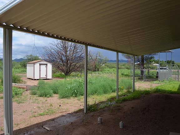 Lovely spot, private with a nice ridge to the east.. Located on 3.26 acres Furniture could go with a reasonable purchase offer. Two attached metal awnings on either side of home as well as a metal RV awning. Private well and custom porch off of front entry. Call Charlie 520-236-1849 for a tour.