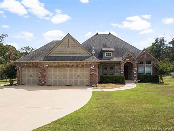 Wonderful 3/2/3 on 1 ac. Nestled in the Woods. Formal dining with hardwoods. Office w/closet, Greatroom has cozy fireplace & wall of windows. Cook's kitchen w/Granit Island & SS Appliances. Breakfast nook. Master suite has adjoining Master Glamour bath. Whirlpool tub. Wonderful backyard for entertaining. 25 mi to downtown Tulsa