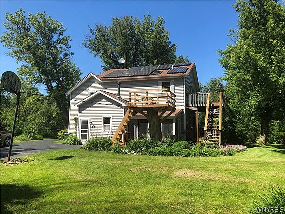 Country living offering almost 2000 sq' of livable space. Almost 3.5 acres of land with walking and atv trails. Added value with solar panels, completely paid for & not leased. Estimated savings on electric from 2018 was $678. 4 bedrooms which includes a first floor bedroom, large eat in kitchen (center island), living room, Dining room, mud room, inside built in hot tub room. Kitchen opens to a covered & private deck. 2nd floor large master bedroom with on suite allows for an abundance of comfortable peaceful space, offers a gas fireplace & sliders leading to a 2nd story deck that leads to the yard. 2 car garage, includes a workshop room. Secluded privately fenced in ground pool with a cabana. Basement walks directly out door. Newer windows & Central A.C. Make an appointment today