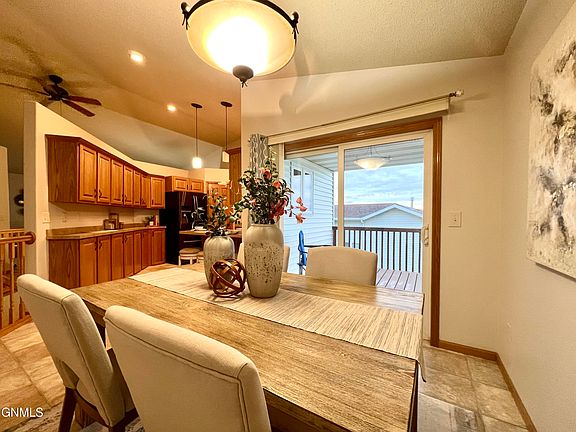 The MOTIVATED SELLERS just lowered the price and will consider an INTEREST BUY DOWN or closing costs on this Walkout RANCH style home located in a great NE Bismarck area! The home features a welcoming covered front porch. New shingles, gutters, downspouts just completed in August, 2023. New garage doors also just installed! The basement family room area was just retextured and painted! The main floor has a large living room, a kitchen with plenty of cabinets and peninsula with counter. The dining area has a patio door leading to the covered deck with great views of the city. There are 2 bedrooms with one used as an office (french doors--has closet). The primary ensuite has a full bath. There is main floor laundry! The walkout lower level has a family room with wet bar with newer wide plank flooring and there is a door leading to the patio. There are 2 more bedrooms and full bath down. One of the bedrooms is very spacious and has a walk in closet. There is plenty of storage space. The attached triple garage is insulated and heated. The Motivated sellers want this SOLD! Back on market because buyer circumstances changed; inspection done with no major issues!