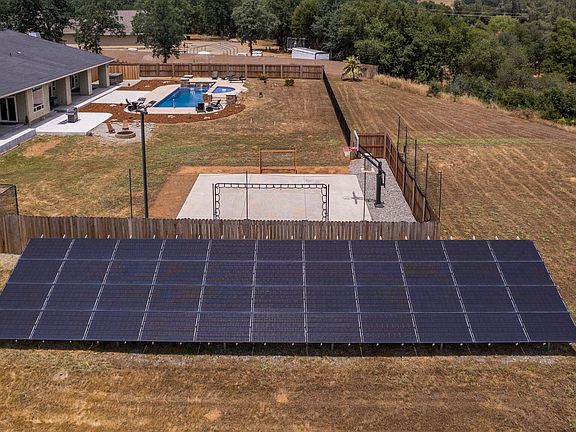 ENTERTAINER'S DREAM with a Gorgeous SALT WATER Pool, OWNED SOLAR & views of Lassen Range! The bright & open living area offers a luxury feel with its tile flooring, high ceilings, crown molding & multiple cozy fireplaces. A custom chef's kitchen with high-end upgrades, granite countertops, tile backsplash, large center island, extra sink, breakfast bar, stainless appliances & pantry for ample storage ! A wet bar complete with mini-fridge, sink & granite countertops. Four spacious bedrooms which include a relaxing Primary Suite with a LUXURIOUS tiled shower, jetted soaking tub, & large walk-in closet! Amazing outdoor space to enjoy the covered patio, sparkling pool, fire pit, quarter basketball court, spacious 3 car garage & RV/Boat parking! Zoned Irrigation lines throughout the yard, 500 gal water storage tank & newer filtration system, partially completed foundation in place for 800 sqft detached space for either an additional garage or living space (plans available)