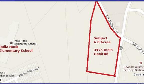 Approximately 6.8 acres of Land, Large Corner at the Intersection of India Hook and Mt. Gallant Rd. Currently zoned Residential and suitable to be rezoned for neighborhood commercial center or townhomes or homes. The corner location offers two long frontage areas for great visibility and access, one of the best sites in North Rock Hill River District. The newest development in the area is the India Hook Elementary school, only 1 mile away. Many new subdivisions are being built. Easy access on Mt. Gallant Rd. to I-77 or travel on India Hook Rd to Harris Teeter shopping center.