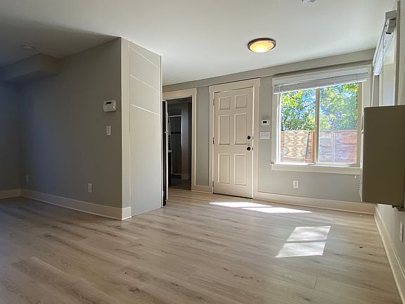 Available in October: Updated garden-level studio apartment with a private gated entrance and small porch area located in the lower unit of a Maxwell Park duplex. This pet-friendly rental is conveniently located near Hwy 580, and AC Transit stops just down the road. Very walkable to Laurel District shops and restaurants and Mills-Northeastern. Tenants have access to a shared front yard and side garden, as well as a cabin ADU meditation/work space. More Details: No smoking, 420 outside only. One quiet, well-behaved, pet-friendly dog, indoor cat, or small caged creature(s) allowed. No pet deposit required; any pet damage will be applied to the lease holder's deposit. Utilities and internet: $50/month for PG&E (one meter for the duplex), water, garbage pickup, & high-speed internet (Sonic) Unit details and amenities: -No pet deposit -Full kitchen with modern appliances -Shared cabin ADU meditation/work space -Recently updated: new flooring, fresh paint -Private gated entrance & porch area -Large shared front yard and small side garden -Private use laundry machines in unit -Built-in storage and drawers -All utilities and high-speed internet included -5-minute walk to Mills College/Northeastern and a ~10-15 minute walk/easy bike ride to Degrees Plato, Communite Table, Everett & Jones, Phnom Pehn, Santana Coffee, Left Coast Power Yoga, Sequoia Diner, Joe's Modern Thai, Farmer Joe's, Ghost Town Brewery, and more. If you are interested, please send a message and tell us a little bit about yourself and your viewing availability. *Serious inquiries only, please. This is a downstairs unit, with a small family of 3 living upstairs. The space is dynamic; photos do it justice, but it is not a 1/1. We love the neighborhood, feel safe, and are choosing to raise a family here, but it is Oakland. Realistic neighborhood reviews on Berkeley Parents' Network. 1 year lease No smoking, 420 outside only. One quiet, well-behaved, pet-friendly dog, indoor cat, or small caged creature(s) allowed. No pet deposit required; any pet damage will be applied to the lease holder's deposit. No painting or modifications. Utilities and internet: $50/month for PG&E (one meter for the duplex), water, garbage pickup, & high-speed internet (Sonic)