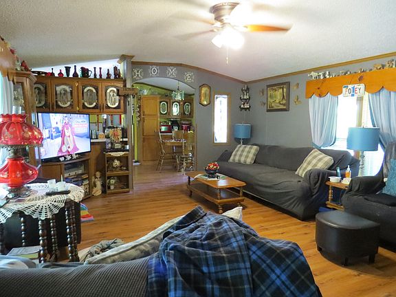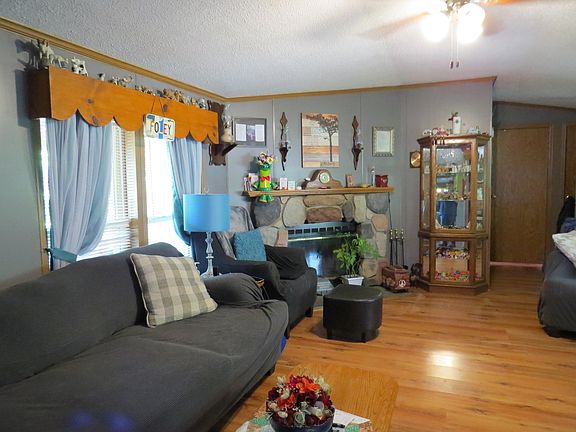 PARK LIKE SETTING!! 2 bd, 2ba, single wide on 3.3 arces. Move in ready home mobile with large living room, kitchen/dining combo, split bedroom plan, wood burning fireplace, covered front porch and covered back porch. Outside there is 2 small storage sheds, small shop with concrete floors and electricity, carport and a concrete footing already poured for your 30x40 shop. Afraid of storms or need to store those canned goods? Don't worry you have plenty of space in the large cellar!! Don't snooze on this great deal or you'll miss out!!