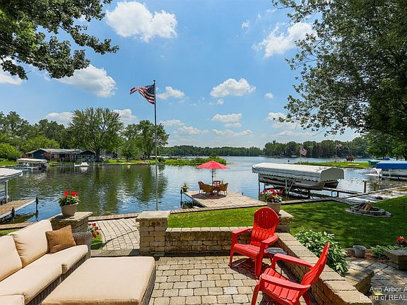 You'll fall in love with this charming, updated, beautifully maintained lakefront property with two docks and 86 feet of frontage on all sports Whitewood Lake in the middle of the Portage-Zukey chain! $150,000 in recent updates/improvements: Open floor plan, updated kitchen with granite counters, SS appliances, natural stone backsplash. Gorgeous stacked stone fireplace. First floor bedroom plus bonus room makes great office/home gym/studio. Breezeway with mudroom bench, storage loft above garage and off season boat storage - tons of parking for friends and family. Upstairs front bedroom balcony offers a stunning view of the lake and cool lake breezes, plus luxuriously updated bath with tiled bench tub/shower, Euroglass doors, quartz counters, LED mirror, porcelain plank flooring, great storage. Fresh paint and new flooring throughout. You'll live on the platform dock - this is a perfect spot for family brunch, happy hour/cards with neighbors, and dinner every night the weather is fair. New boat lift, whole house water filtration, updated windows, clean crawl space, two storage sheds, generator. Pizza, ice cream, trails nearby. 25 minutes to A2, 20 minutes to Brighton. Listed at recently appraised value. Seller is agent.
