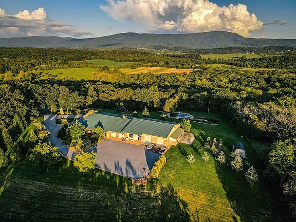 Live the Yellowstone dream. Outside the box and where the buffalo roam. This home is a masterpiece of design and intrigue. Built as strong as the Rock of Gibraltar and could be known as Happy Valley Retreat. Open concept timber frame-style lodge interior fortified by steel beam structure. Solidly constructed at pinnacle of Happy Valley, 13.5 acres of panoramic Shenandoah Valley, Blue Ridge and Allegheny mountain views. Wide open flexible living space, tucked away surprise wing rooms, totals 8280 beautiful sq ft. 1200 feet storage. 3700 ft conditioned garage. 3200 ft veranda. Along with the heated floors, the massive stone fireplace will warm the body and soul. Sunrises and magnified sunsets. Multigenerational level one living options. 32x68 barn/stable. Garden shed.