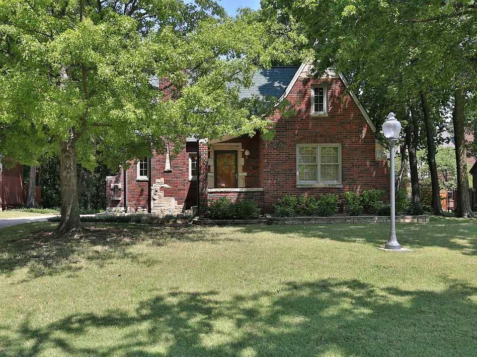 An Architectural Dream is Now Available in Sleepy Hollow! Built in 1932, this English Cottage Tudor home is nothing short of perfection, featuring 3 bedrooms and 2 bathrooms in 1762 sq feet of extremely well-maintained and updated bliss. Some of the many fine visual details include original lighting restored with up-to-date electrical code, plush carpet and high-grade wood floors, new gas log fireplace with rustic wood slab mantle and original sconce lighting, finely detailed wood appointments such as the beamed ceilings, stair flooring, railings, wall accents and closets, and remodeled bathrooms with unique design touches of pedestal sinks, cross handle faucets, walk-in tile shower in master, lavender color tub and sink in hall bath. Guests are greeted in the covered entry with impressive speakeasy iron peephole, into the warm and ample living room. A formal dining room with big windows for natural light is adjoined to the kitchen which features lots of cabinet space, 'soda-fountain style' bar-top seating and french doors to the deck and private yard. 2 bedrooms and bathroom complete the main level. The upstairs loft has been completely remodeled into a master suite retreat! You'll find plenty of space with an industrial appeal of open duct work, wood-beamed ceiling, Casablanca ceiling fans, skylights, walk-in closet and more. A finished bonus room can be a small office or offer additional wardrobe space. Take note of the custom attic stairs as yet another design feature that offers functional use for cleaning fans, lights and accessing storage space. The basement offers a large laundry space, rough-in area for additional bathroom, and clean brick and paneled walls for bonus area of entertaining or hobbies. The exterior ambiance continues with sloped roof line, full stone and brick masonry, an extended and wide driveway to a clean, full brick 2-car tandem garage with workspace and attic storage. Small private backyard is easy maintenance, while mature trees and woodsy setting create a beautiful scene of privacy and tranquility. This is a must-see home for buyers who want unique quality!!