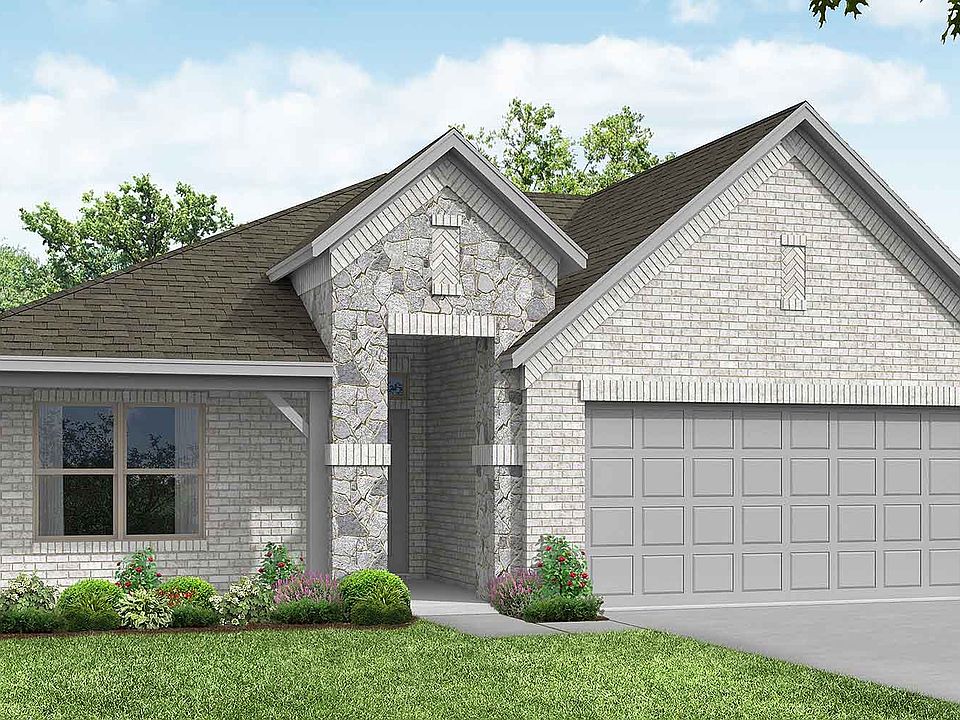 The Lincoln plan offers an open concept design with beautiful California-style kitchen, large island, and vaulted ceilings and a Texas-sized walk-in pantry for small appliances and storage. The elegant owner suite offers separate shower, garden tub, dual-sink vanity and large walk-in closet. Spacious, private secondary bedrooms and separate laundry room.