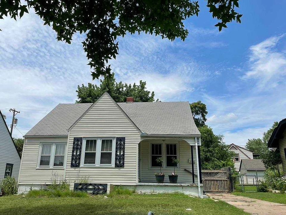 Cute and Charming. Near Wesley Medical Center. 2 bedrooms, 1 bath, 1 car garage, unfinished basement. Upper level has covered front porch, hardwood floors throughout. Decorative fireplace in living room, formal dining room, eating space in kitchen, great old stove!, all appliances remain, storage in hall, hall bath, 2 bedrooms. Basement has laundry, storage, a room that has not been finished and used as home office, with decorative fireplace. Backyard is an oasis! Seller is offering a roof for the house, to be installed by closing. Buyer can pick roof shingle color. Any upgrades to be paid by buyer. Farha Roofing estimate is available. McDonald Golf course entrance is a few feet away!